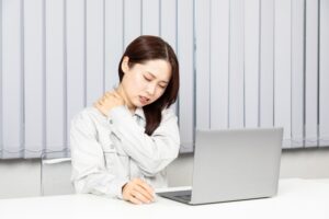 肩こりの多くは、日常生活における姿勢の乱れから生じます。特に長時間同じ姿勢を続けることの多い現代において、正しい姿勢を意識することは、肩こり再発防止の第一歩です。